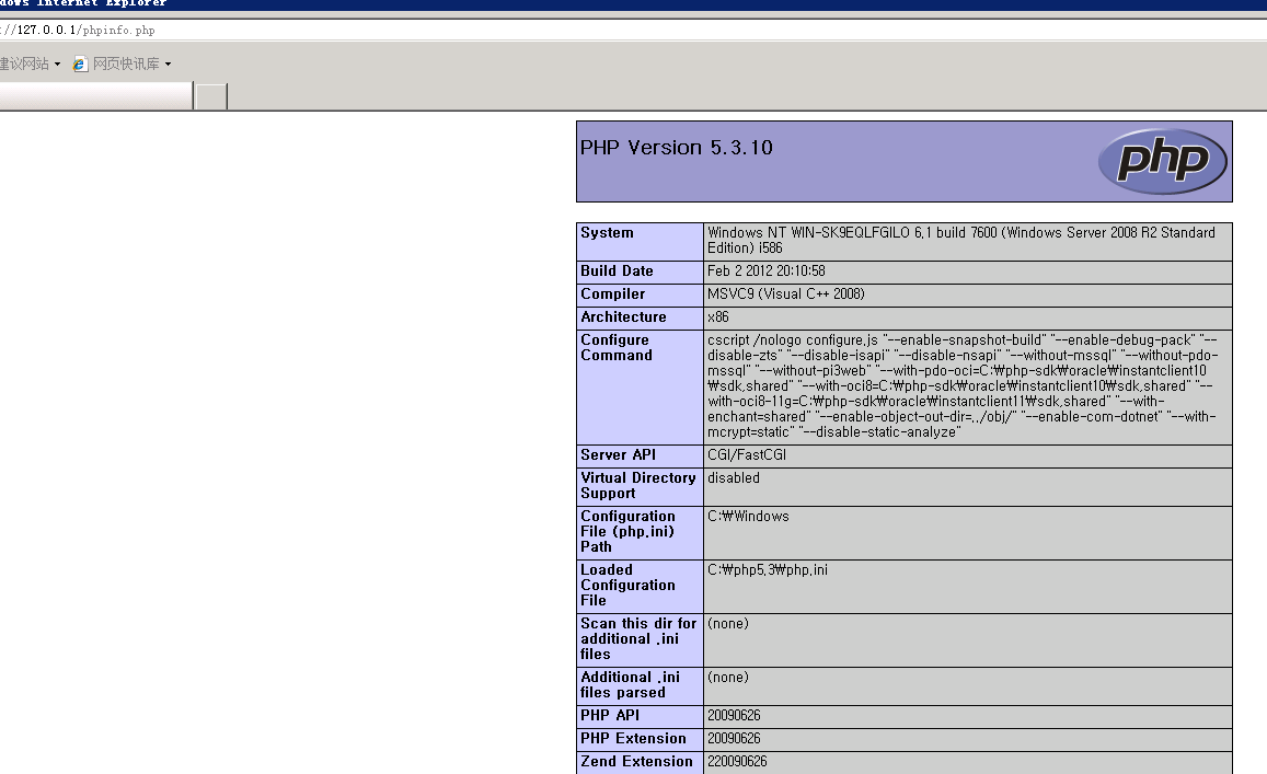 php-5.3.10-nts-Win32-VC9-x86.zip解压到C:\php-5.3\目录下